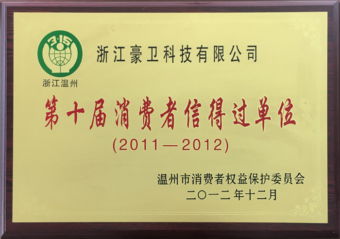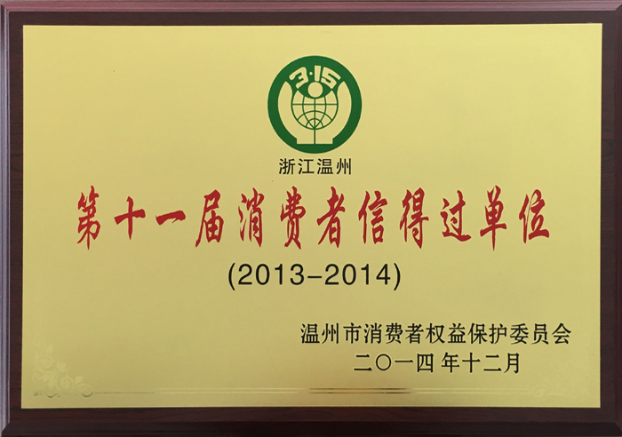 樂清市第九屆消費者信得過單位 樂清市第十屆消費者信得過單位 樂清市第十一屆消費者信得過單位